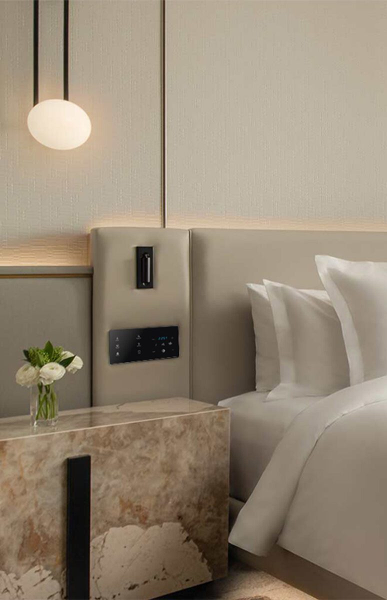 Welcome to a new era of intuitive room management. Luxio keypads provide effortless control over every room setting—enabling guests to adjust lighting, temperature, shades, and more with just a simple touch.